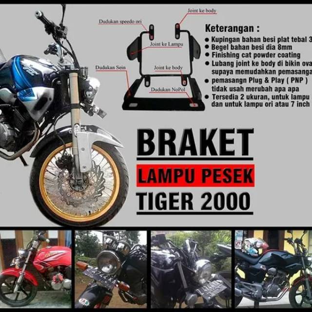 Belanja Sekarang Juga Hanya di Bukalapak. Bracket pesek honda tiger lama plus lampu autoval tiger revo Motor. Braket lampu pesek merubah tampilan motor agan menjadi lebih garang dan tampil beda.